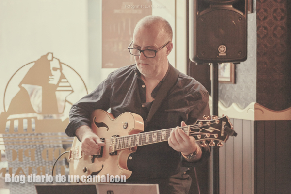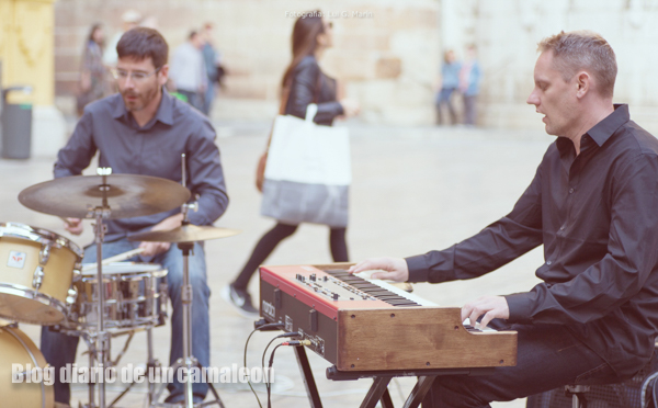 El sábado 14 fué el dia más intenso, y el único que pude tener el tiempo suficiente para disfrutar de casi todo lo que se ofrecía, así que, cámara y agenda en mano nos fuimos a la caza de las diferentes agrupaciones jazzísticas que se presentaban, y así fué como nos encontramos con la Phil Wilkinson trío en la plaza del Obispo, Javier Galiana Trío en plaza Mitjana, Eva Jiménez y su extraordinaria voz llena de matices, junto a Carlos Pino a la guitarra, en la sala Premiere, y por último Rycardo Moreno Band, en el mercado de la Merced, junto al teatro Cervantes, excelente flamenco-jazz por definirlo de alguna manera, formación en la que podemos oir a Tony Romero, excomponente de Chambao.